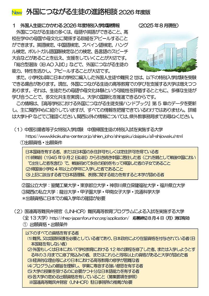 外国につながる生徒の進路相談2026年度版 (pdf)