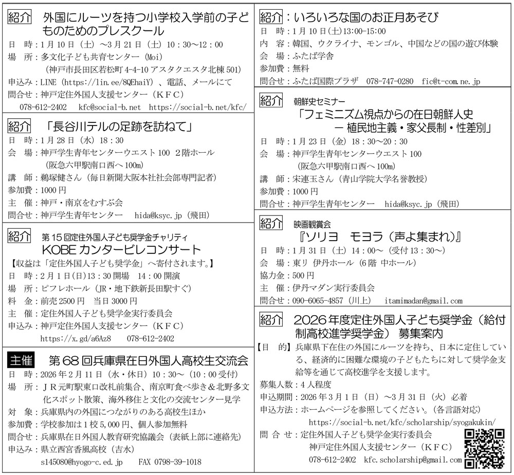 「第68回兵庫県在日外国人高校生交流会」の案内を掲載しました。